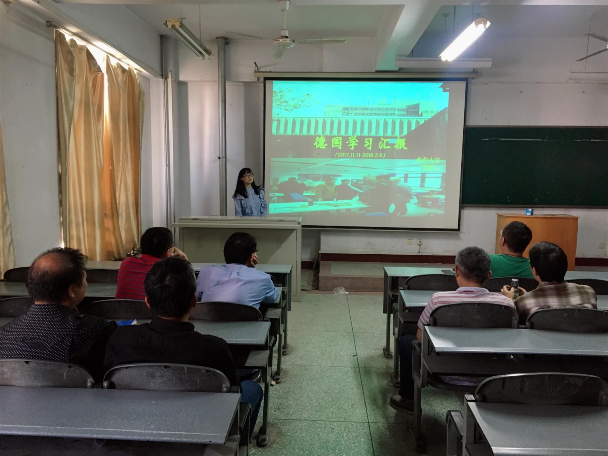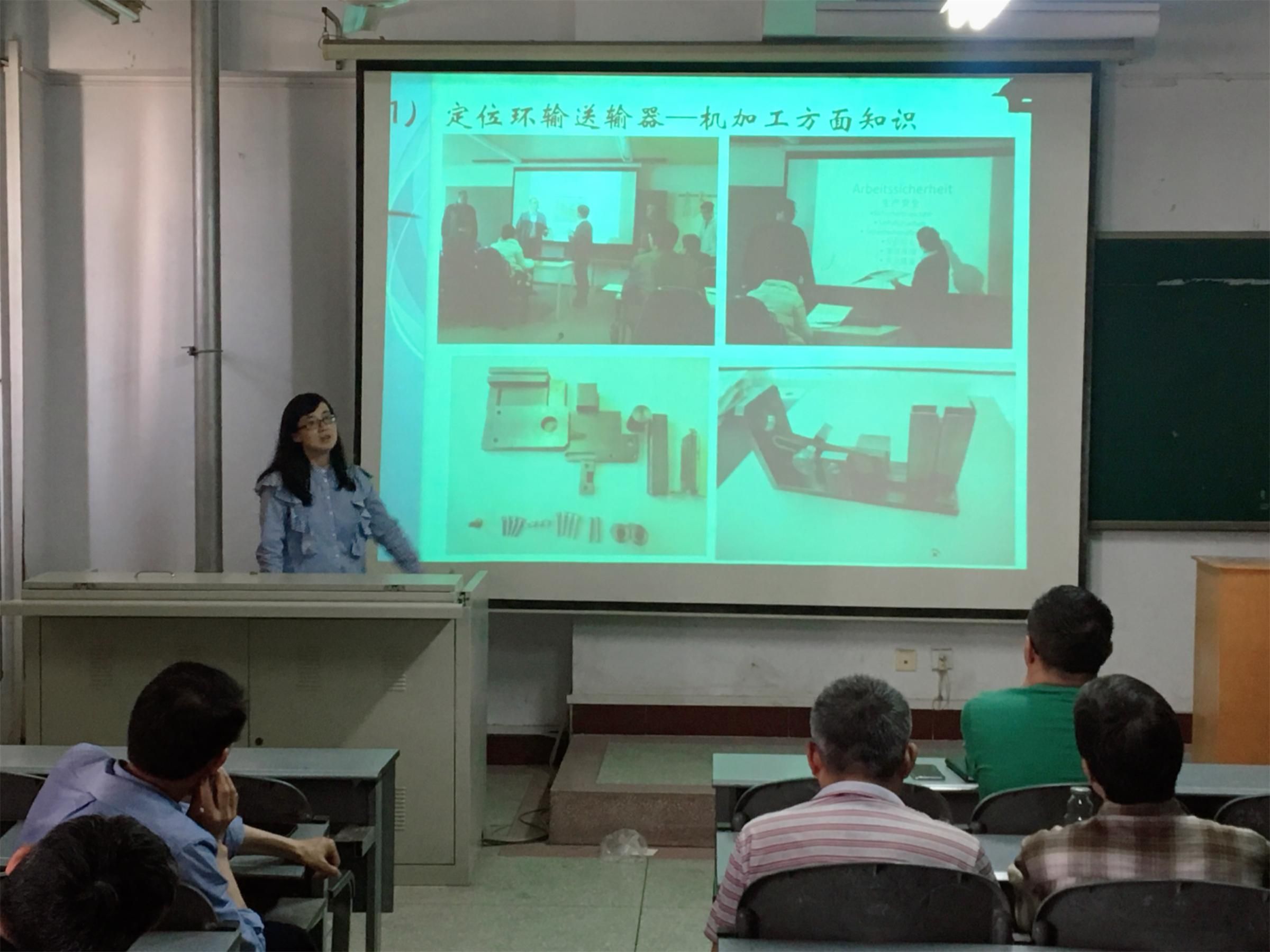近日,我院机械制造与自动化教研室宋芳老师,在2301教室为全院教师作题为《双元制培养模式简介-德国学习汇报》的学术报告。宋芳老师于2017年11月至2018年2月期间作为访问学者在德国进行了为期三个月的交流学习和访问。在此期间,系统学习了德国双元制职业教育体系,全程参与了机电一体化专业的教学、实训、管理等环节工作,积累了宝贵的经验。由她撰写的关于焦作市职业教育发展的建议受到市委领导的高度称赞。