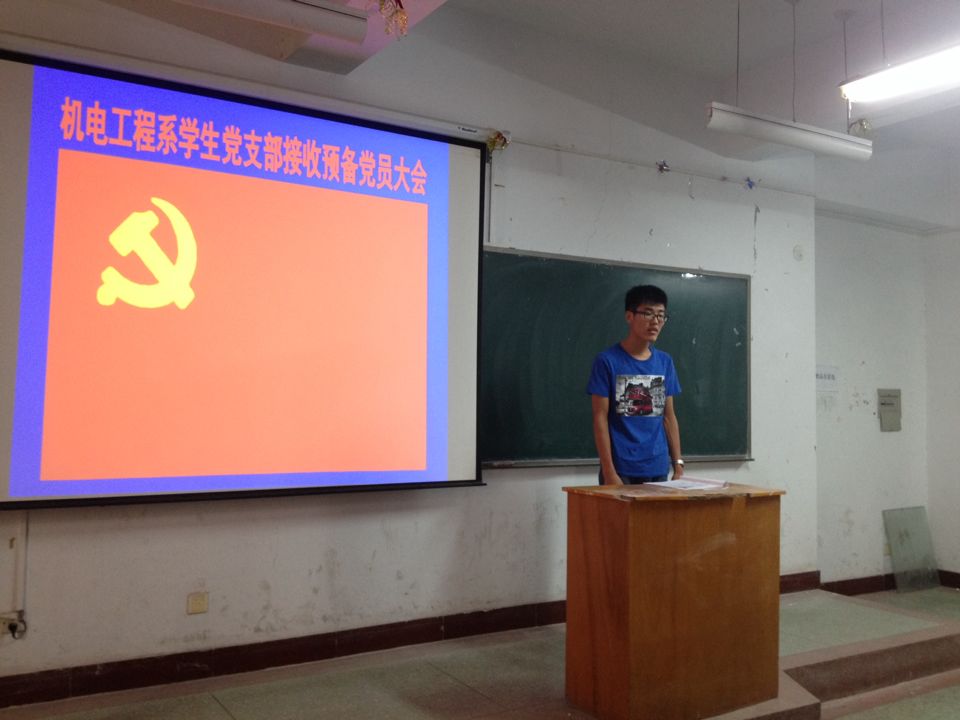 2014年6月5日下午,我系学生党支部召开接收预备党员大会,机电工程系党总支书记李淼参加了会议。本次会议由学生党支部书记王保华老师主持。