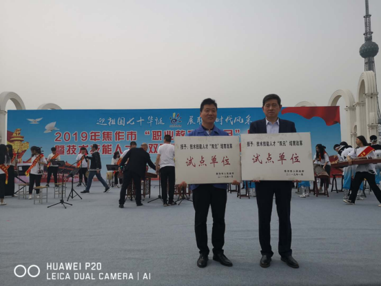 2019年5月7日上午,焦作市“职业教育活动月”启动仪式暨技术技能人才双元”培育试点单位授牌仪式在焦作市龙源湖公园北广场举行,此次活动以“迎祖国七十华诞,展职教时代风采”为主题,结合我市正在开展的技术技能人才“双元”培育改革试点的工作实际,展示我市职业教育取得的成果,大力营造发展职业教育的良好氛围。焦作市政府副市长薛志杰,市教育局、人力资源与社会保障局等局委领导参加会议。永利yl23411集团被授予技术技能人才“双元”培育改革试点单位,永利yl23411集团副校长秦海金教授代表试点单位做典型发言。