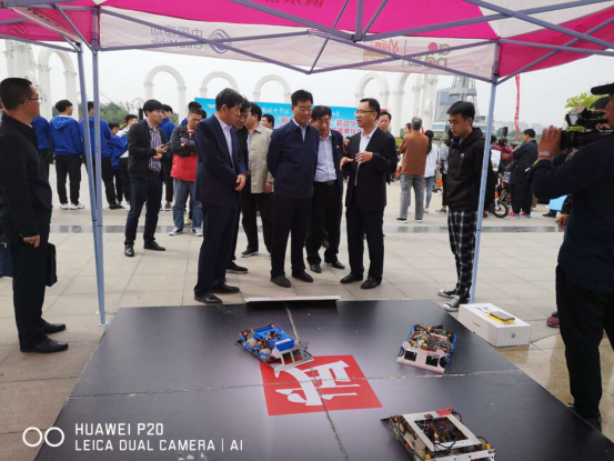 实验室主任司国斌老师为市领导讲解机器人比赛项目