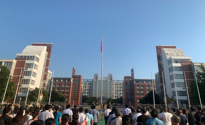 2019年9月7日清晨,机电工程学院在永利yl23411集团(南校区)广场上举行了本学期第一次升旗仪式。晨光中,英姿飒爽的国旗护卫队迈着矫健整齐的步伐,护送着鲜红的“五星红旗”走向升旗台。“升国旗,奏国歌,敬礼!”“起来,不愿做奴隶的人们,把我们的血肉铸成我们新的长城……” 伴随着激昂嘹亮的《义勇军进行曲》,国旗在秋风中缓缓升起。全体师生肃立向国旗行注目礼,一个充满斗志与希望的新征程正式拉开了帷幕。