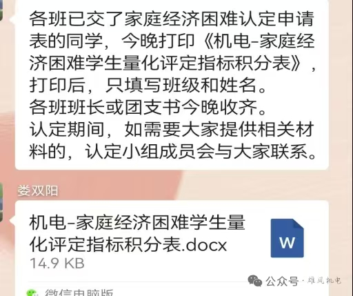 线上宣传同样有条不紊地推进。学院将资助政策相关资料发送至各班班群,由各班班长负责宣传,确保请假和在外住宿的学生也能及时了解政策内容。同学们可以随时在群里提问,老师和班委及时答疑解惑,保障政策宣传的效果。