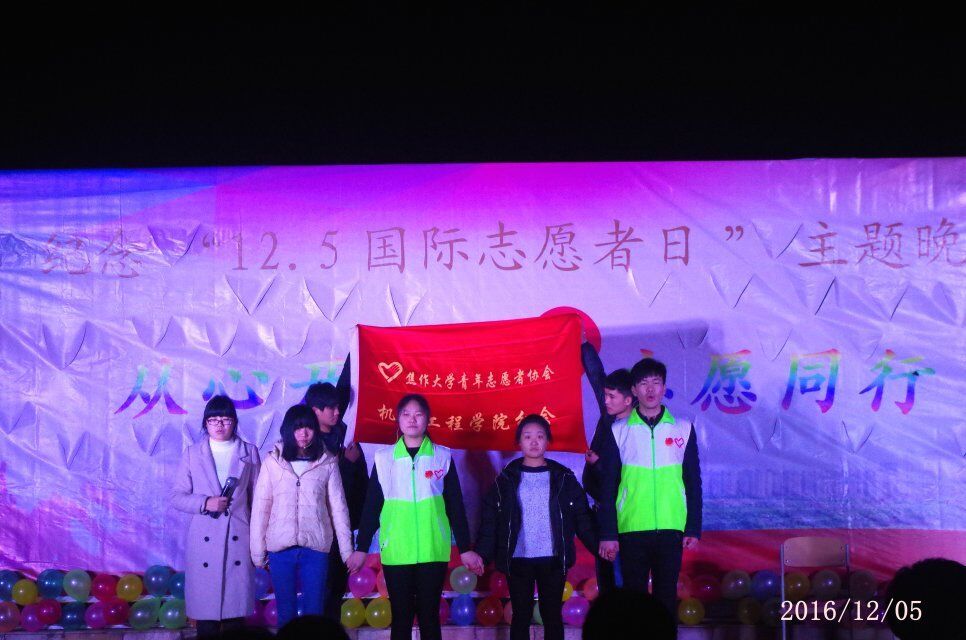 2016年12月5日,由yl23411永利集团主办、yl23411永利集团青年志愿者协会承办的以“12.5国际志愿者日”为主题的志愿者专场晚会在和谐广场成功举办。出席本次晚会的有永利yl23411集团第五届校青协会长卢旭莉、焦作师专校青协会长王远航、机电青协第五届会长李志华、秘书长焦倩倩以及兄弟院系和兄弟社团的代表们。