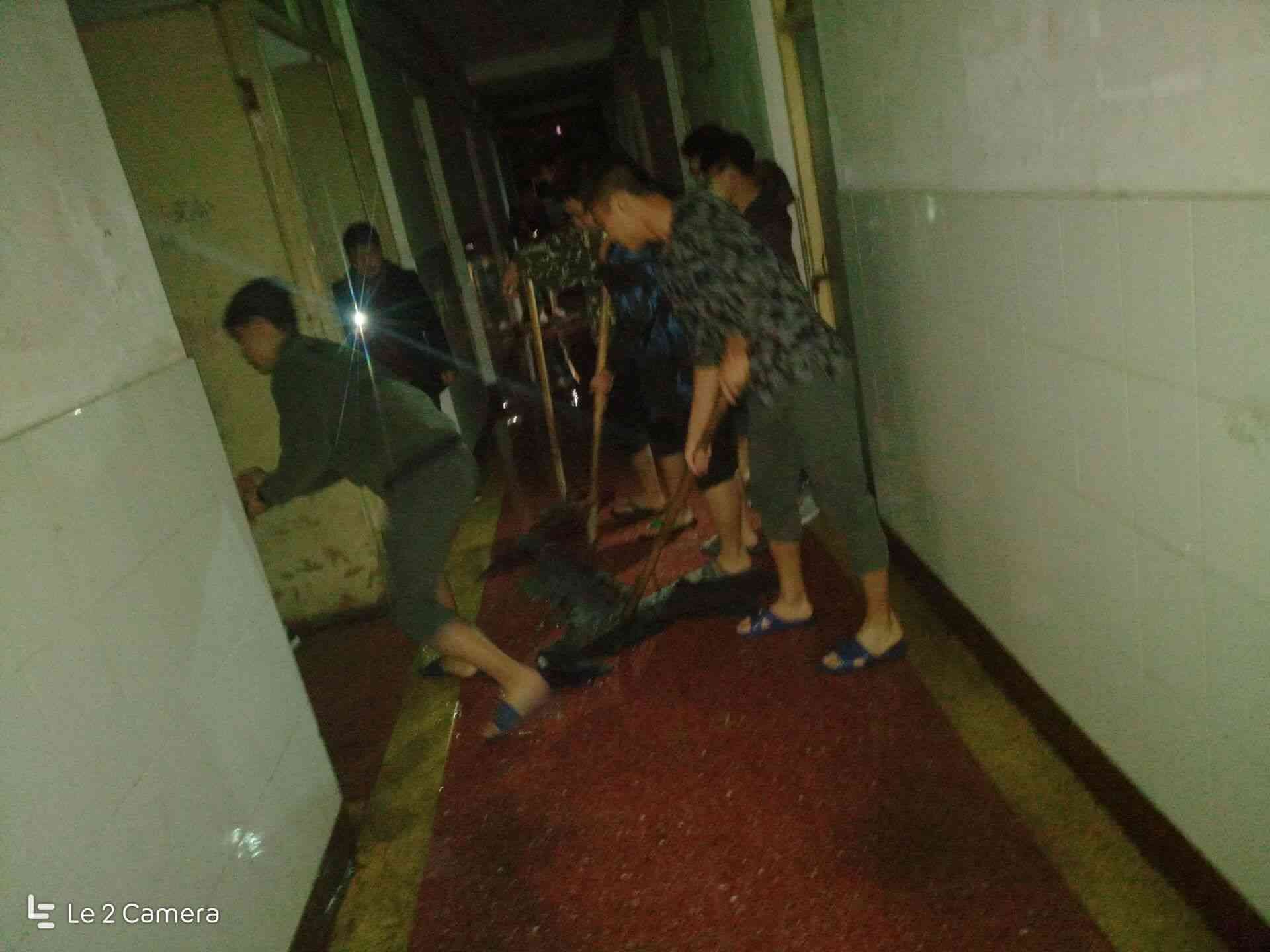 12月6日晚上十二点左右四号楼五楼因暖气管道发生爆裂,导致水淹了整个五楼,yl23411永利集团团总支学生会成员积极参与救水行动。直到凌晨四点止住了水,他们才肯回去睡觉。