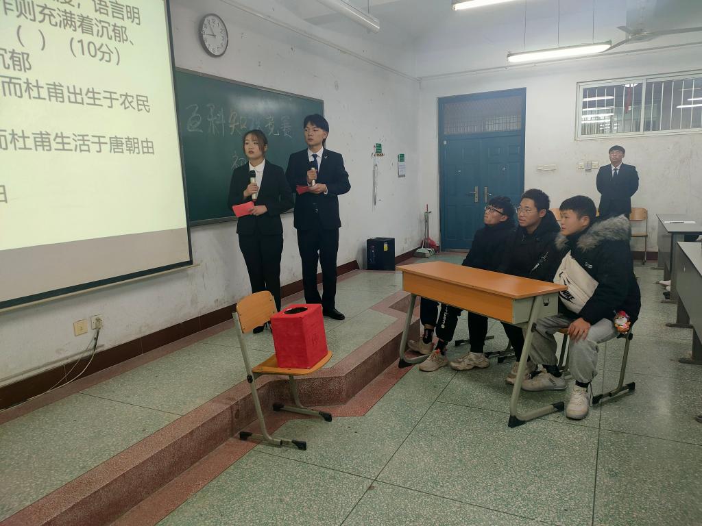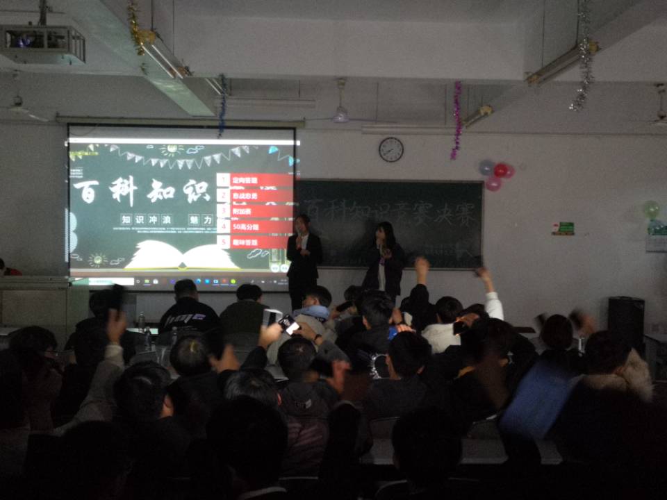本次比赛共分为3个环节分别是初赛、复赛、决赛。在每场比赛附加上了才艺展示环节。在比赛过程中各班的参赛选手都表现的很活跃,积极抢答,现场气氛极为热烈。很难分出高低胜负。同时在比赛期间还通过小品和才艺表演的环节来与现场观众互动,调动观众的参与性。