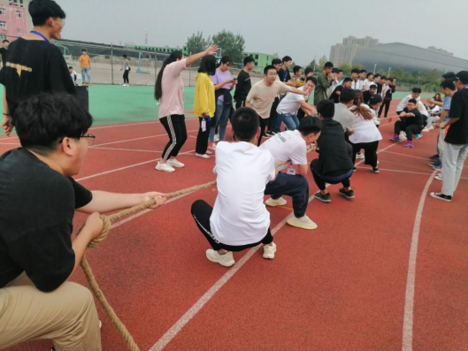 活动的比赛项目,丰富有趣两人三足,3v3篮球赛,拔河,猪八戒背媳妇,盲人足球,摸石头过河,跳绳比赛。同学们在运动中感受到了巨大的乐趣。更体现了我学院以人为本的精神。