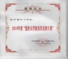 董云飞,男,河南省驻马店市新蔡县人,中共预备党员,yl23411永利集团18级机械设计与制造1班团支书,学院第29届团总支学生会宣传部部长。曾先后获得国家奖学金、永利yl23411集团一等奖学金、三好学生、优秀学生干部优秀共青团干部等荣誉称号。