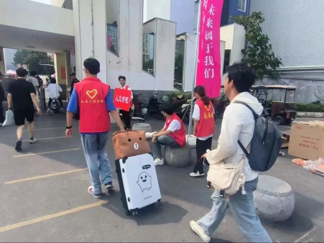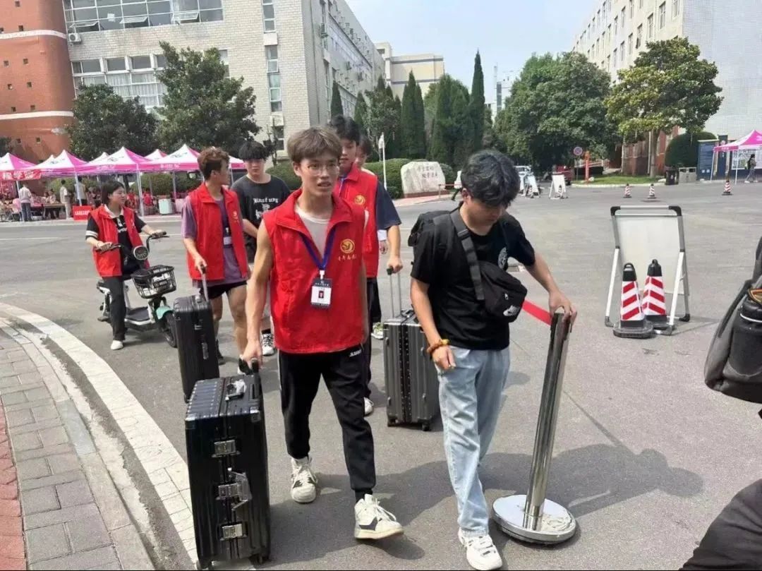 热心的帮助新生们搬送行李