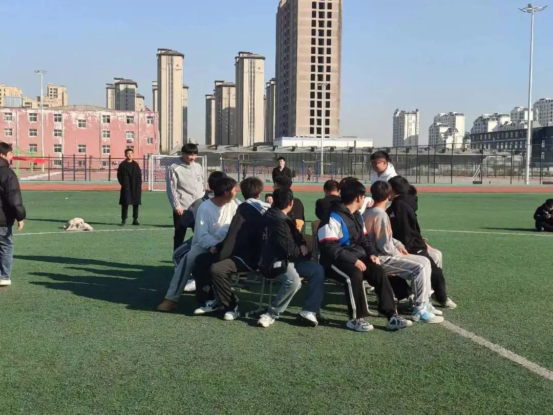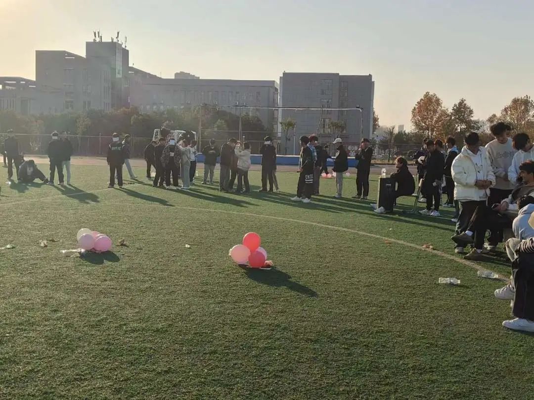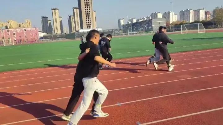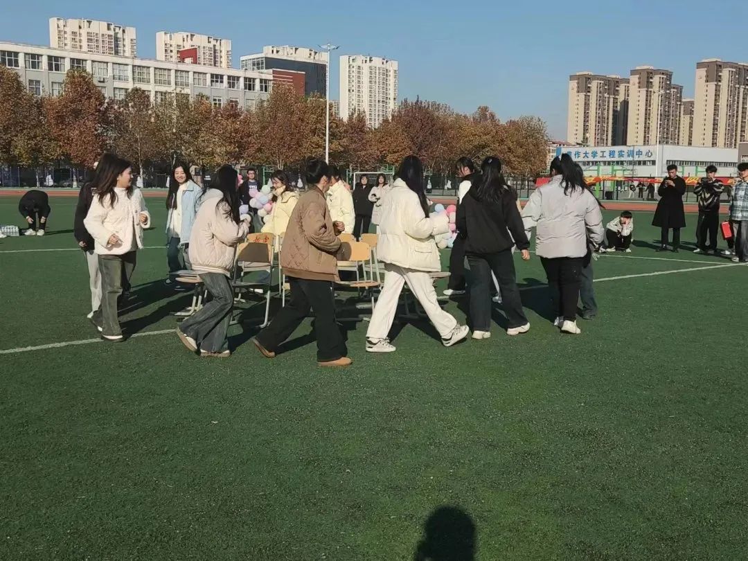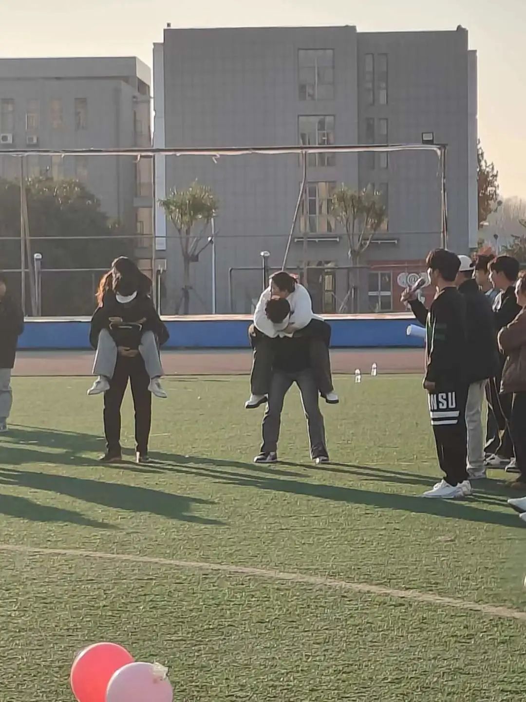 此项目每一组需要两名同学配合,由一名同学背另一名同学进入指定区域,背人的学生要蒙上眼,在指定区域听被背着的同学的指示,踩破地上放着的5个气球,用时最短的队伍获胜。