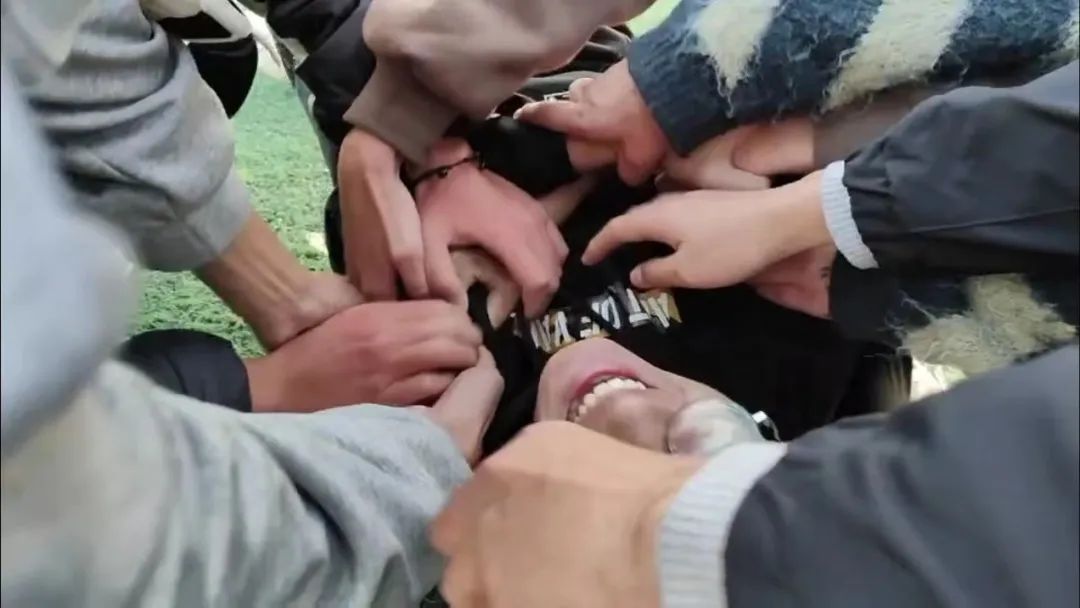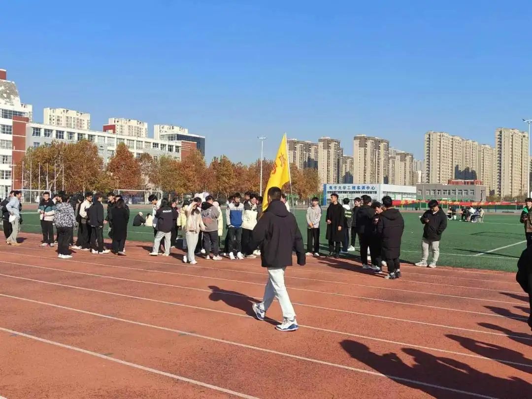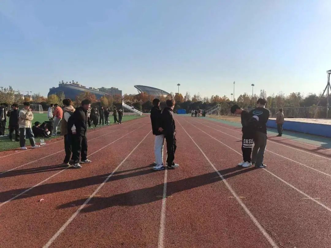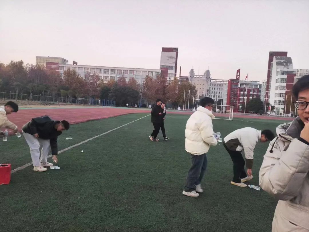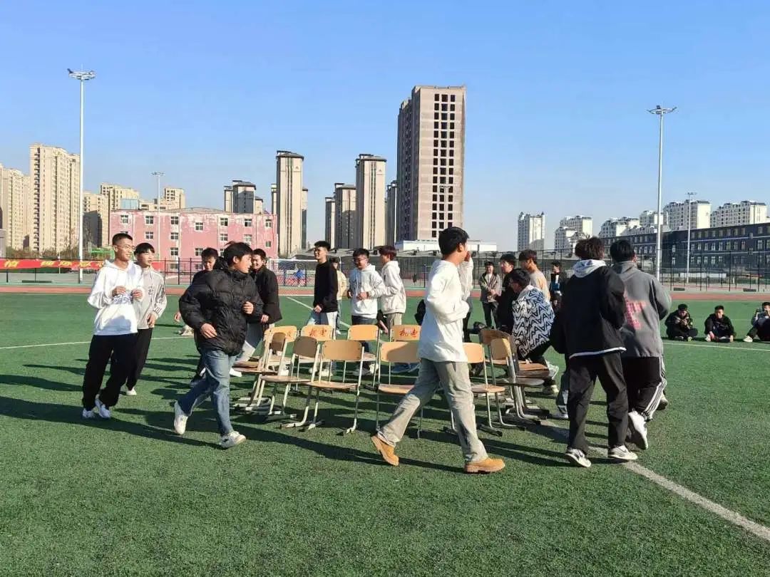 此项目每一组需要两名同学配合,由一名同学背另一名同学进入指定区域,背人的学生要蒙上眼,在指定区域听被背着的同学的指示,踩破地上放着的5个气球,用时最短的队伍获胜。