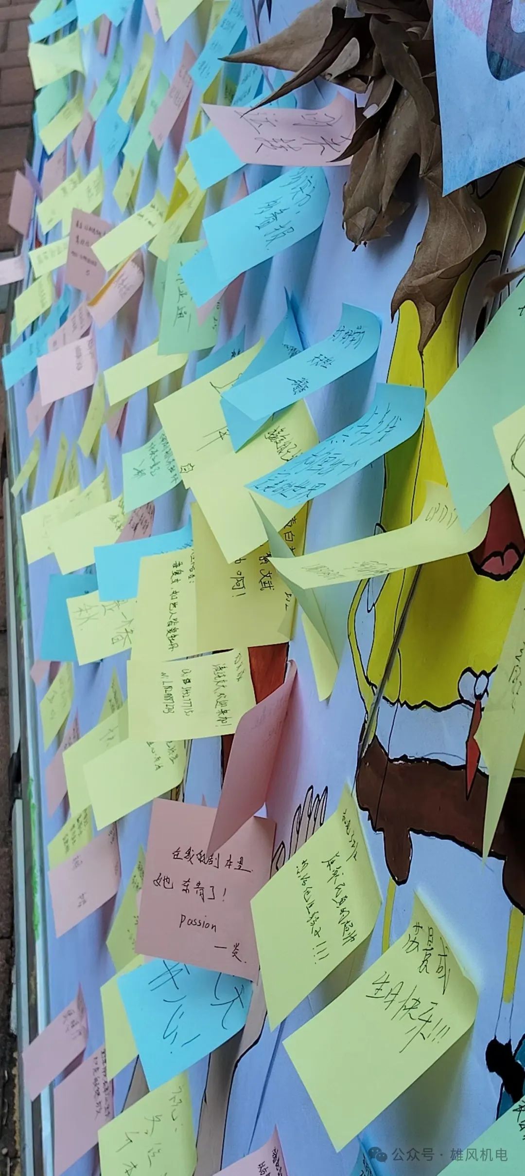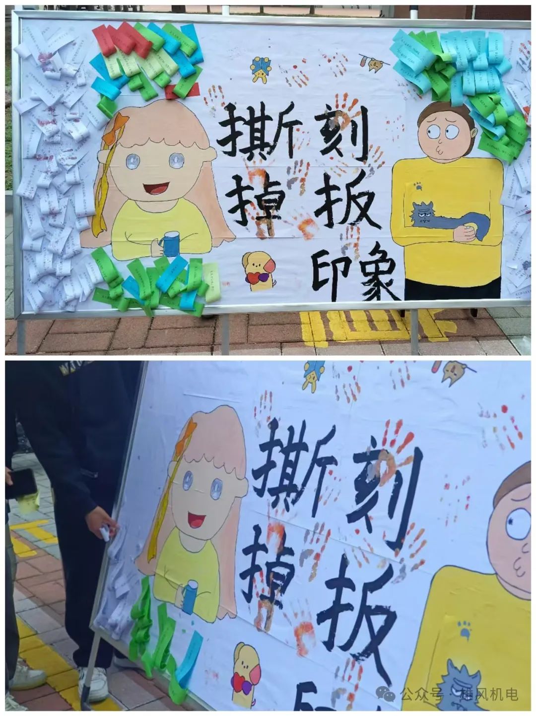 活动现场,气氛热烈且充满活力,我们设置了两个特别的面板,同学们聚集在一起用撕掉标签和在留言板上留言的方式发表自己的看法。