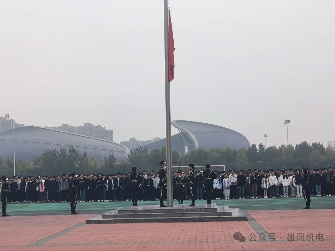 在操场举行庄严的升国旗仪式