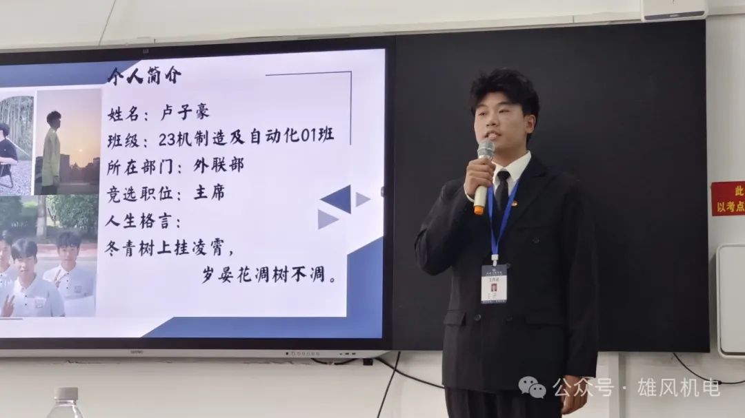 在学生干部竞选环节,同学们积极参与,充分展示了自己的才华和能力。他们有的以丰富的社会实践经验为优势,有的以出色的组织协调能力为亮点,还有的以对学生工作的热情和执着为特色。每一位候选人都全力以赴,赢得了现场师生的阵阵掌声。