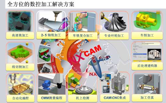 针对数控加工,在单一系统中提供了广泛的功能,满足模具零件加工、机械零件加工、复杂零件加工等各种要求,其功能包括:轴铣加工,车削加工,多功能加工,电火花线切割,钻削加工等基于特征的加工,加工编程自动化,刀具轨迹模拟,材料去除模拟,三维加工机床运动模拟,后置处理器的定制,以及后处理生成NC代码,切削参数库(进给速度,主轴转速,刀具等)。数控加工工艺文档输出。