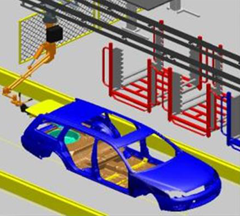 基于多款国际主流的工业机器人针对焊装生产线进行离线编程下载机器人程序到实际机器人上传已有机器人程序,以供重用和优化对一条焊接产线实现从3D环境搭建到工艺仿真,到机器人离线输出到PLC虚拟调试。