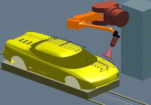 通过涂装工艺仿真模块的应用让学生在虚拟环境中实现对喷漆进行仿真,优化漆膜厚度和喷漆路径;优化选择喷漆工具;对自动化的喷漆线进行快速精确的工艺规划。